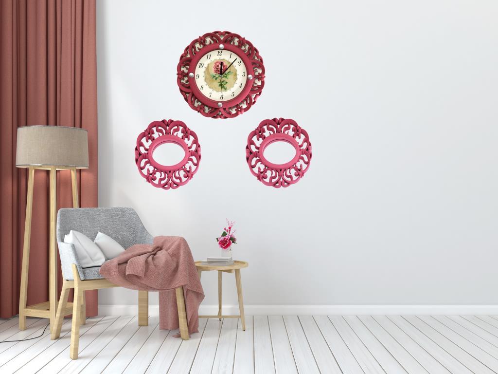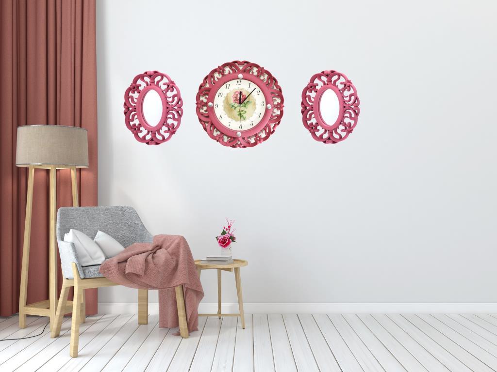 Galaxy 737 Serisi Modern Aynalı Set Klasik Rakamlı Ev ve Ofis Duvar Saati 35 Cm Rose