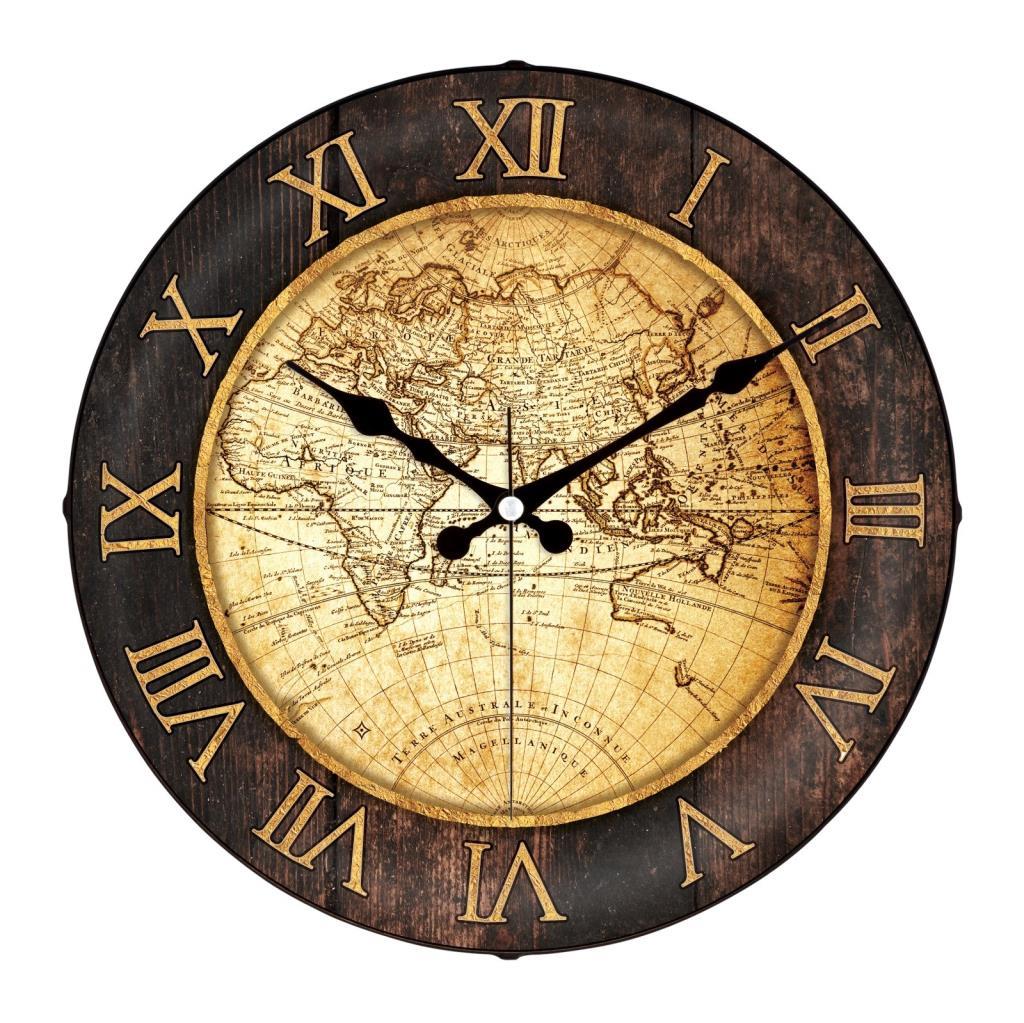 Galaxy Bombeli Cam Serisi Dünya Haritalı Roma Rakamlı Sessiz Akar Ev ve Ofis Duvar Saati 30 Cm